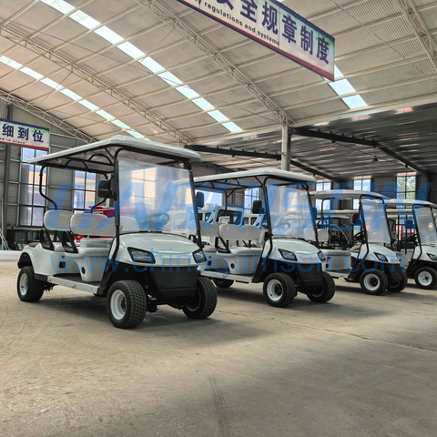 Nuevo carrito de golf turístico eléctrico para 4 personas de 4 plazas y cuatro ruedas